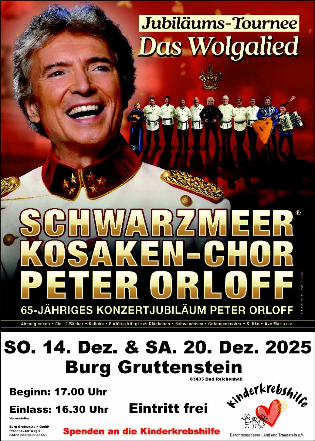 Wir freuen uns darüber den prominenten Musiker Peter Orloff und den Schwarzmeer Kosaken-Chor bei uns im Gewölbe der Burg begrüßen zu dürfen.